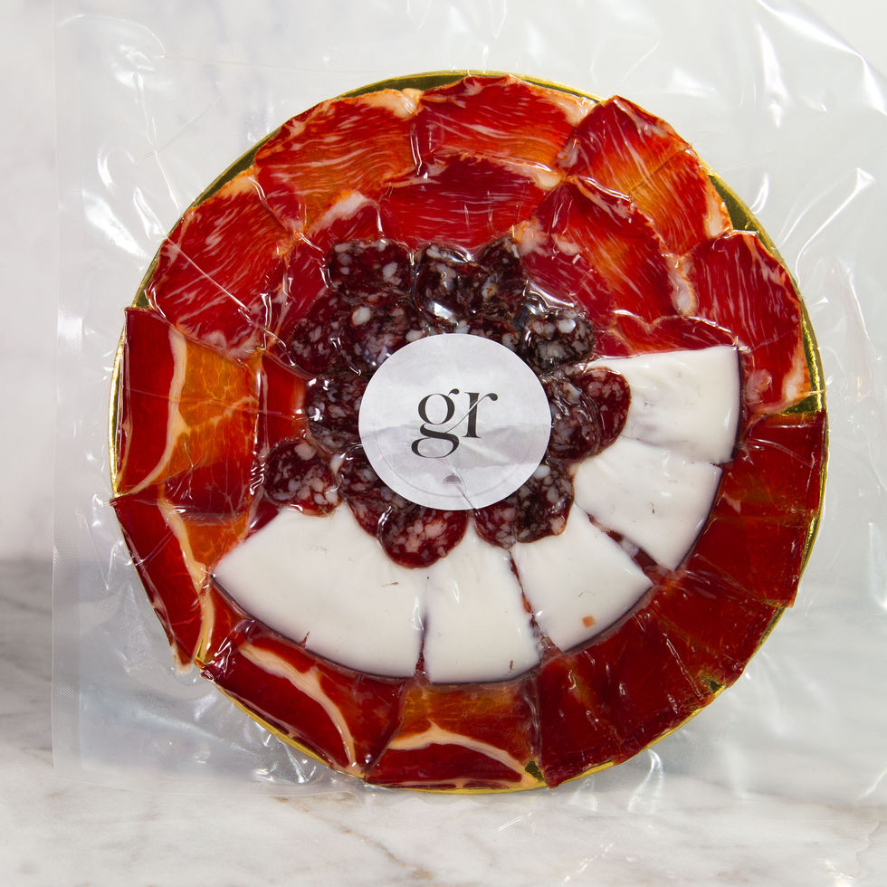 Jamón ibérico de campo, lomo ibérico, Fuet ibérico y queso de murcia.